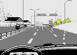 | Du håller en hastighet av 90 km/h. Lastbilen framför dig på bilden nedan är i färd med att göra en vänstersväng in på ”din” väg. Vad är det första Du skall göra i denna situation? |