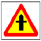 | Du kör på en huvudled och ser vägmärket på bilden nedan. Vad innebär märket? |