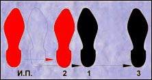 Основной ход.На базе этого движения мы будем строить почти все остальные движения ча-ча, поэтому рекомендуем обратить на него особое внимание. I часть.Исходная позиция: вес тела на левой ноге. | |||||||||||||||||||
