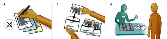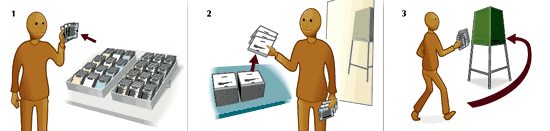 Для участия в выборах Вы должны предъявить документы. Если на избирательном участке Вас не знают лично, Вы должны предъявить документ, удостоверяющий личность, например, водительские права, паспорт или должностное удостоверение. Если у Вас нет таких документов, за Вас может поручиться другой человек и таким образом подтвердить Вашу личность, но тогда ему нужно будет предъявить свой документ, удостоверяющий его личность. | ![]() |