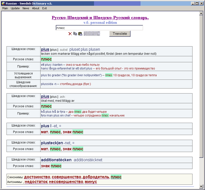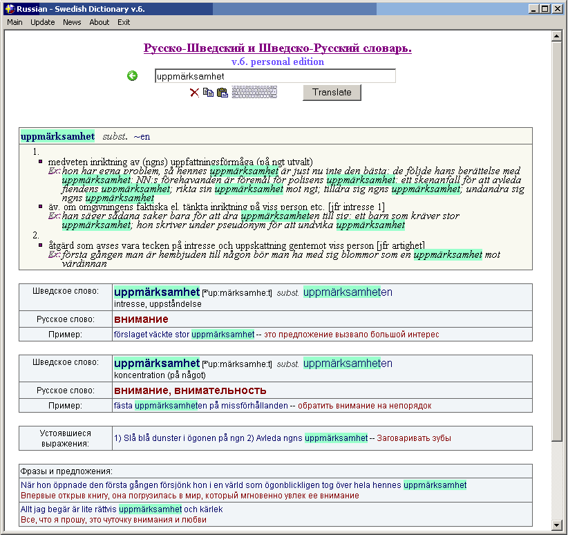 Русско-Шведский и Шведско-Русский словарь v.6 personal edition