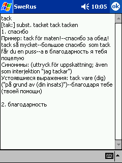 | Пример вида окна программы при переводе со шведского | |