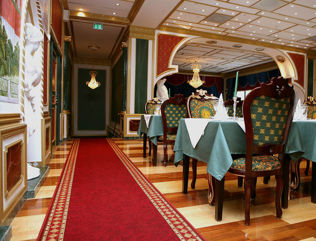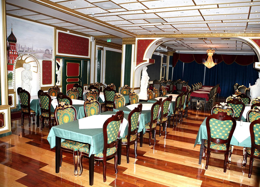 Ресторан рассчитан на 60-350 персон. Хорошо подходит для проведения банкетов, свадеб и торжеств.