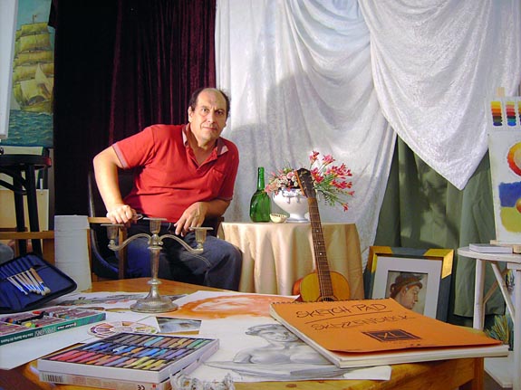 - Как таковой учёбы в учебных заведениях художественного профиля у меня нет. Я изучаю всё самостоятельно. Но в ходе художественного самообразования меня интересует искусство разных времён. Среди художников особо привлекших меня оказались символисты голландской школы, которые носили название «Викторианцы». Среди них были такие как Роззетти, Алма-Тадема и Вильям Вастерхаус. Они использовали в своих сюжетах сцены из древнеегипетской и древнеазиатской культур. Художники этого направления привлекли меня своим колоритом, а также выразительностью деталей. Их полотна были наполнены романтизмом, сочетающимся с тонким чувством дизайна. Особенно для меня было интересно то, что все они были представителями высшего сословия того времени, и, как следствие, стали художниками исключительно для своего удовольствия, что как бы роднило их искусство с искусством художников Минойской культуры. Символисты - викторианцы тоже как бы являлись представителями освобожденного интеллектуализма своего времени. В сфере их интересов было также культурное наследие Человечества. В своём творчестве символисты широко использовали археологические материалами раскопок Помпеи, Древнего Египта. После изучения творчества символистов я написал несколько работ, одна из которых называется «Вечная музыка».
