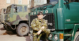 | Однажды я попал в серьезную автоаварию, повредил позвоночник (защемление нерва) и три недели просто лежал дома. Меня хотели вообще из армии отчислить. Но я справился с болезнью и вернулся на службу, правда, в другую часть. Я переехал служить в центр Стокгольма, в конное отделение – К1. Там я тоже служил водителем грузовика. | ![]() |