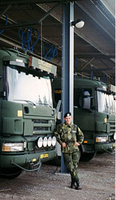 | Отдельно нужно было получить права на вождение танка, отдельно - на вождение транспортёра, потом грузовика и грузовика с прицепом. На технику безопасности обращалось особое внимание. Первые четыре месяца мы ездили по всей Швеции, перевозили танки, грузовики. У меня была огромная машина – Rullflak (Växelflak). Мне очень нравилась эта работа, было интересно... | ![]() |
