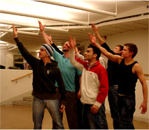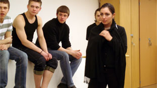 | Да, конечно, у нас есть тренер с 11-летним опытом участия в КВН. Это Гарри Польский, который в прежние годы играл в сборной Риги, команда ”Amigos”. Скажу, что без этого опытного человека, который серьёзно и довольно длительное время участвовал в КВН, организовать новую команду было бы значительно сложнее. Классические приемы игры, многие тонкости, которые возникают именно в КВН, не настолько очевидны, чтобы быстро придти к ним самостоятельно, без подсказки. Поэтому очень радостно наблюдать, как улучшается игра ребят с каждой тренировкой. | ![]() |